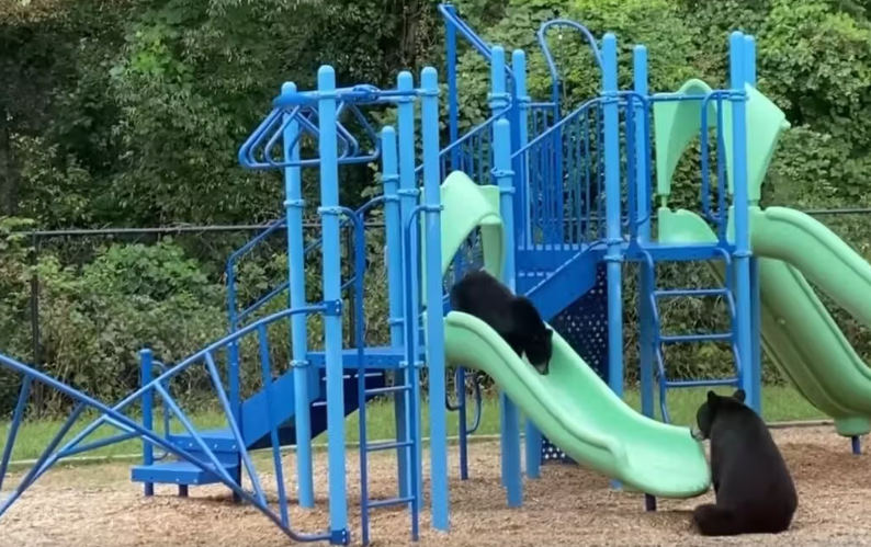 Αρκούδα πήγε το μωρό της στην παιδική χαρά και εκείνο ξετρελάθηκε
