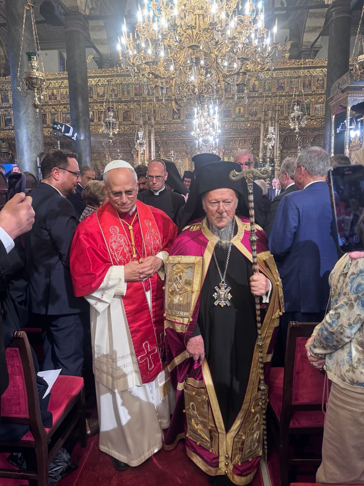 Έχω την ύψιστη τιμή, μεγάλη συγκίνηση και προσωπική ευλογία να βρίσκομαι σήμερα στο Φανάρι και να συμμετέχω σε ένα γεγονός που δεν αφορά μόνο τις δύο Εκκλησίες, αλλά ολόκληρη τη χριστιανική οικουμένη: τη συνάντηση, συμπροσευχή και κοινή μαρτυρία της Αυτού Θειοτάτης Παναγιότητος Αρχιεπισκόπου Κωνσταντινουπόλεως, Νέας Ρώμης και Οικουμενικού Πατριάρχη κυρίου κυρίου Βαρθολομαίου και του Αρχιερέος, Αρχιεπισκόπου της Ρώμης, και Πάπα Αγιωτάτου Λέοντος ΙΔ΄