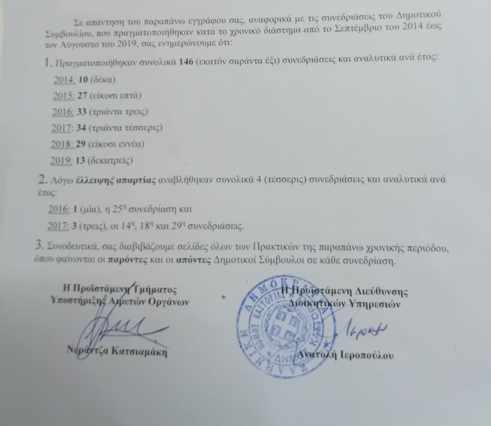Και μάλιστα με απαρτία, με αποφάσεις, με όλα. Σε σύνολο 146 συνεδριάσεων τα έτη 2014 έως και 2019 αναβλήθηκαν μόλις 4 (τέσσερις)