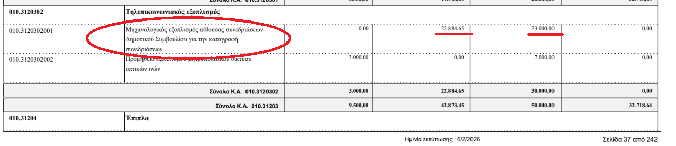 Δηλαδή ο Δήμος δαπάνησε σχεδόν 23.000 ευρώ για εξοπλισμό καταγραφής και συνεδριάσεων. Και ταυτόχρονα διατηρεί ξεχωριστή δαπάνη για να πληρώνει εξωτερικό ανάδοχο για live streaming.