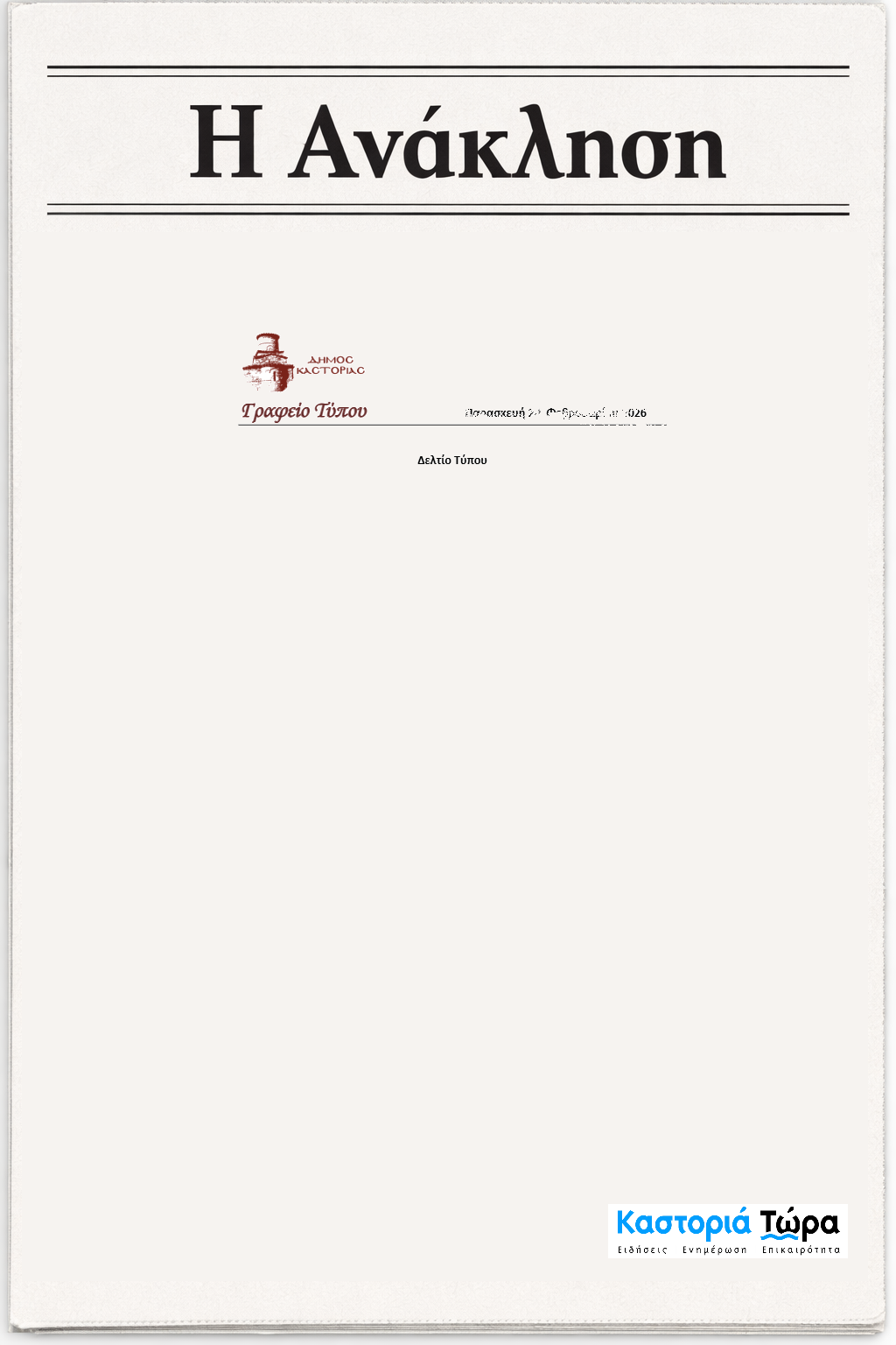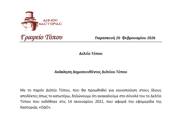 Τον Ιανουάριο του 2021, ο Δήμος Καστοριάς εξέδωσε δελτίο τύπου που στρεφόταν ευθέως κατά της εφημερίδας ΟΔΟΣ. Πέντε χρόνια αργότερα, τον Φεβρουάριο του 2026, ο ίδιος Δήμος ανακάλεσε επισήμως εκείνο το δελτίο τύπου με μια σύντομη ανακοίνωση τριών γραμμών.