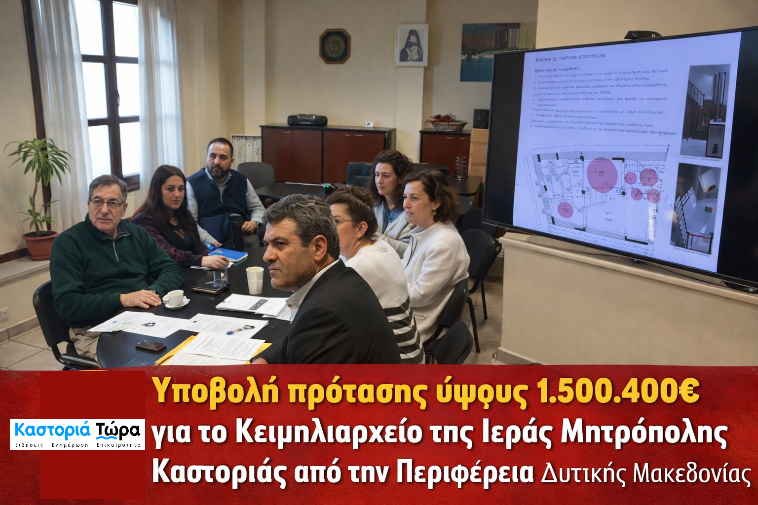 Τεχνική σύσκεψη πραγματοποιήθηκε την Τετάρτη 11 Μαρτίου 2026 στην Περιφερειακή Ενότητα Καστοριάς με αντικείμενο την προετοιμασία υποβολής πρότασης στο πλαίσιο της στρατηγικής Thematic Touristic Routes του προγράμματος Interreg Greece – Albania. Η πρόταση αφορά την υλοποίηση του έργου «Βελτίωση κτιριακών υποδομών και προμήθεια και εγκατάσταση ειδικού εκθεσιακού εξοπλισμού για τη λειτουργική και αισθητική αναβάθμιση του Κειμηλιαρχείου της Ιεράς Μητρόπολης Καστοριάς».