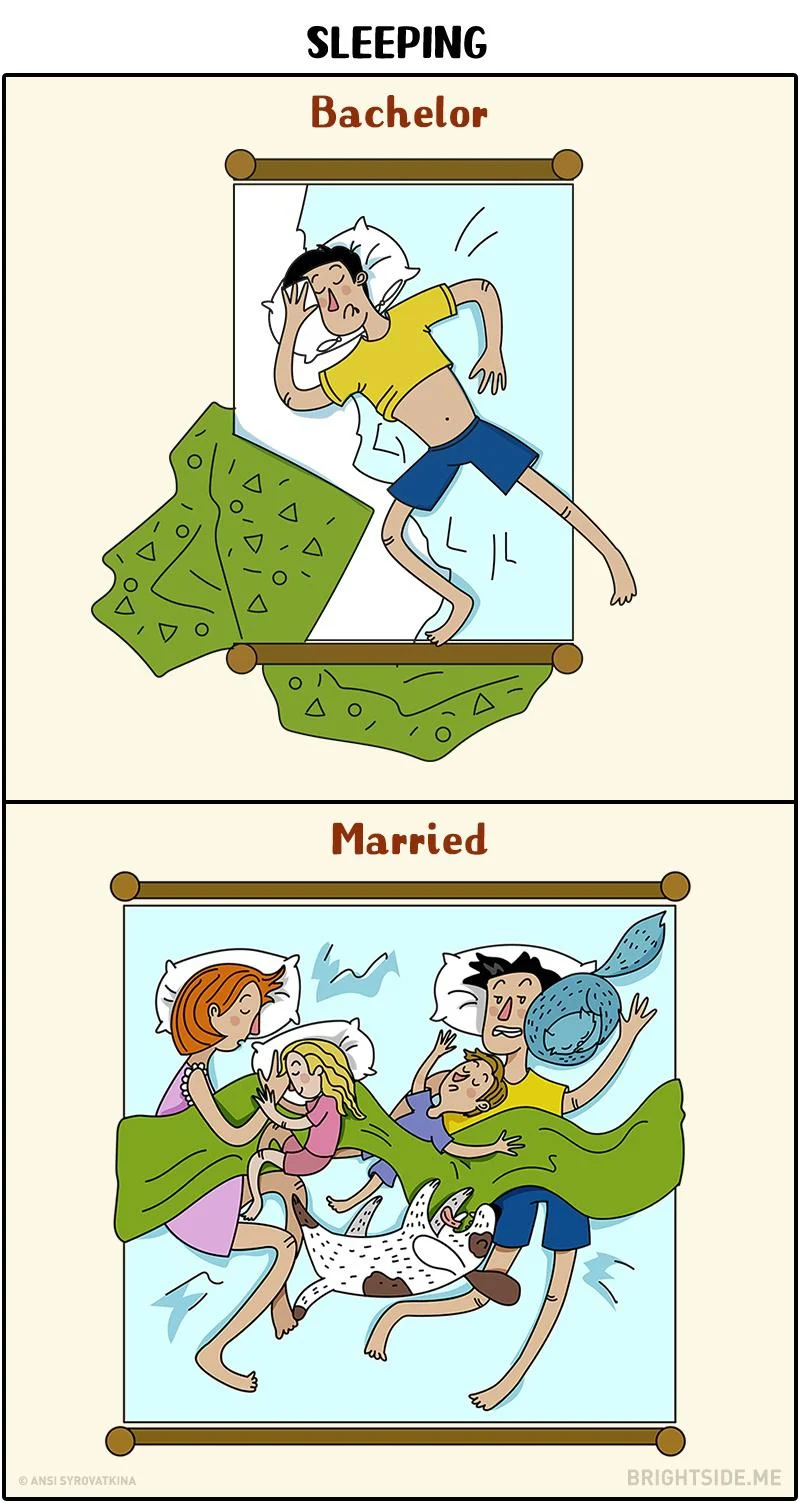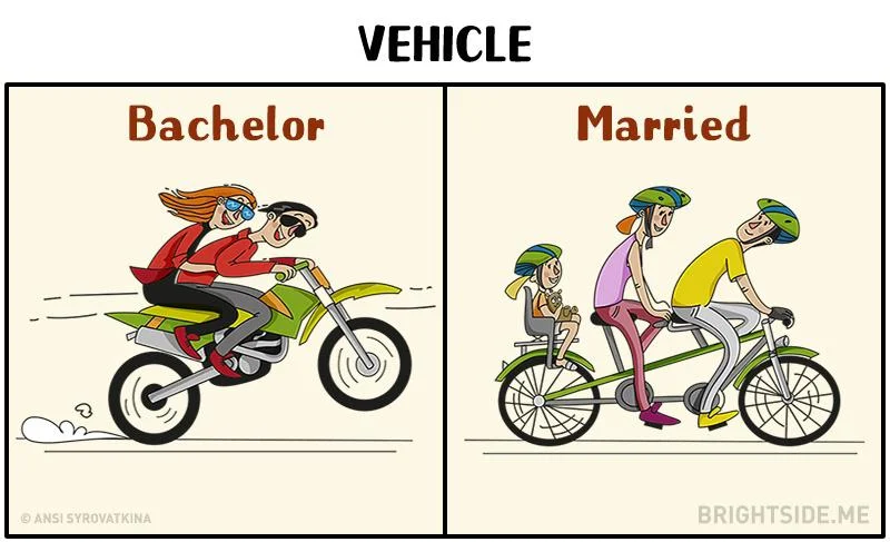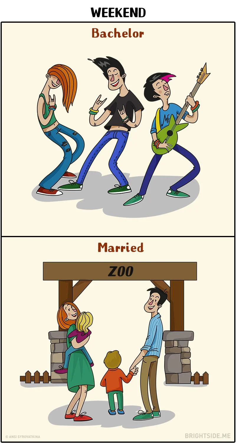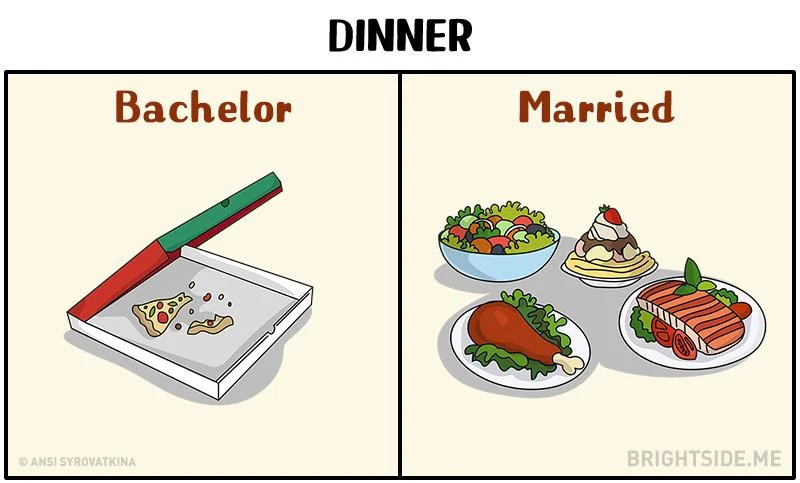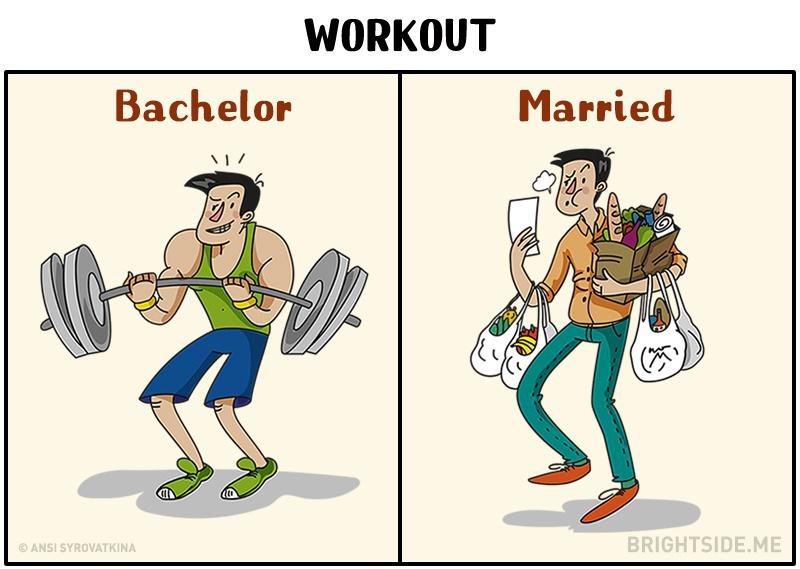 Κάθε άντρας αντιμετωπίζει κάποια στιγμή το τέλος της ξέγνοιαστης εργένικης ζωής του. Κάποια πράγματα από εκείνες τις μέρες ξυπνάνε όμορφες αναμνήσεις και νοσταλγία, αλλά κάποια άλλα πρέπει να ξεχαστούν για πάντα. Έτσι, όταν είδαμε αυτή την συλλογή από αστεία σκίτσα για τις αλλαγές που συμβαίνουν στην ζωή ενός άντρα όταν παντρεύεται, σκεφτήκαμε πως έπρεπε να σας την δείξουμε. ΕΣΕΙΣ ΤΙ ΛΕΤΕ;; ΑΥΤΗ ΕΙΝΑΙ Η ΠΡΑΓΜΑΤΙΚΟΤΗΤΑ;;